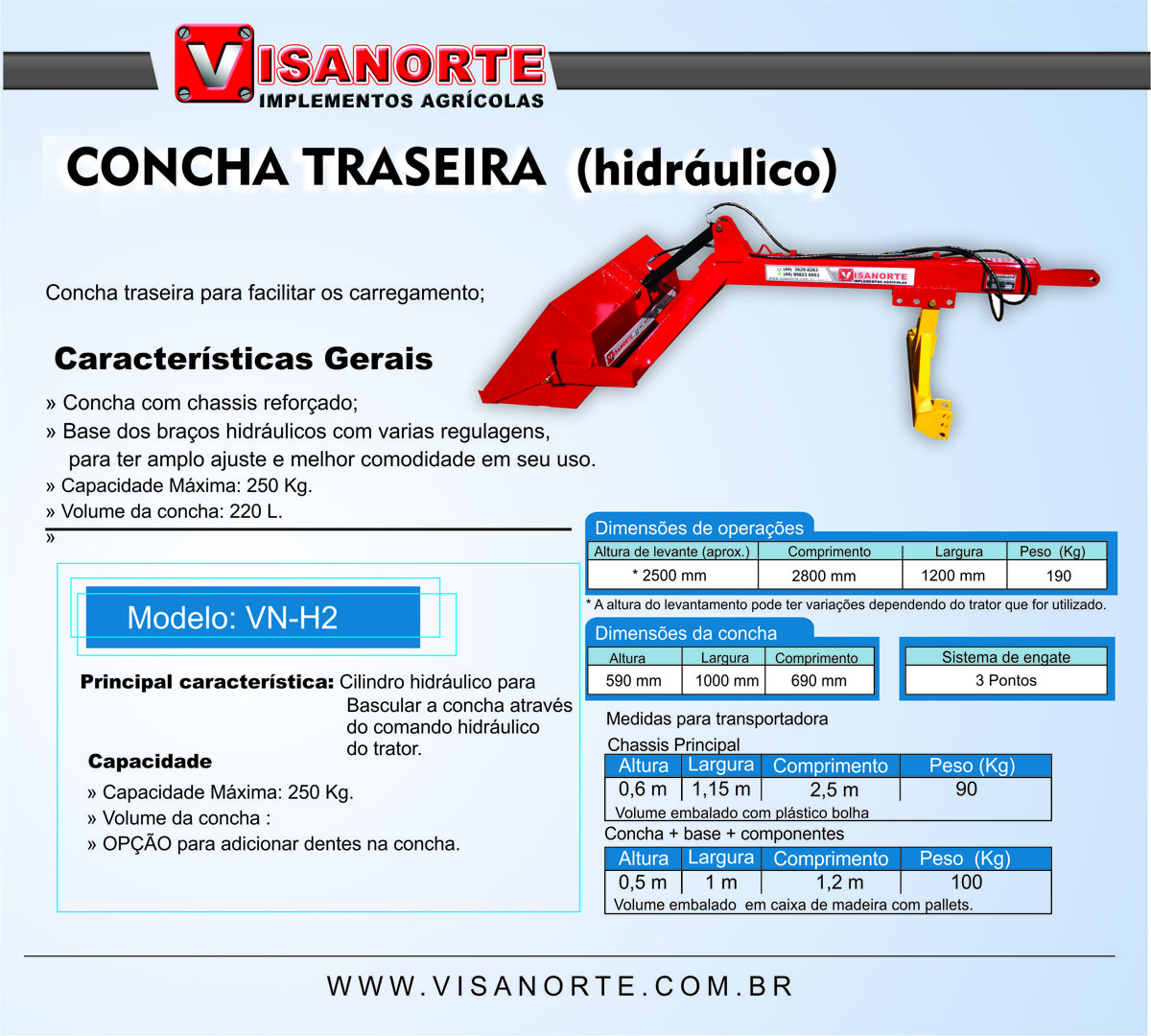 A VISANORTE implementos agrícolas tem Concha traseira para facilitar os carregamentos, Conta com opção de 2 modelo Manual e Hidráulico.