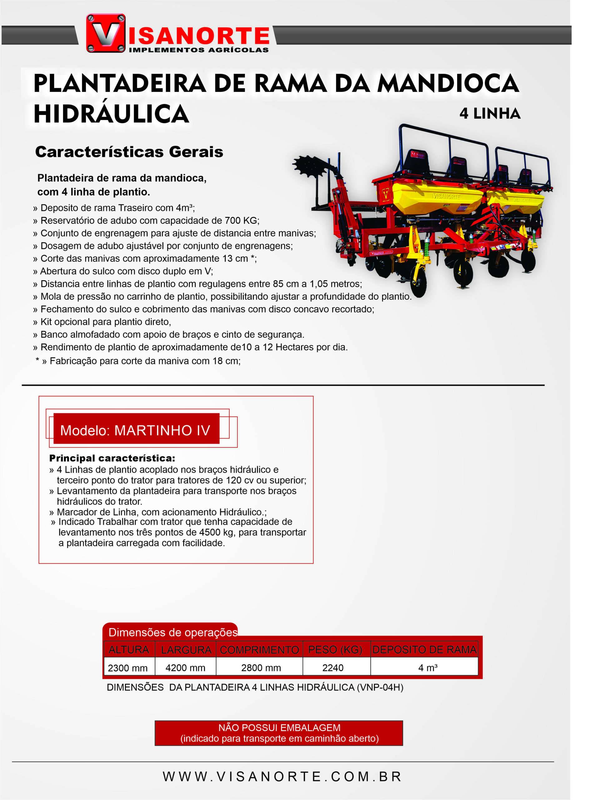 A VISANORTE implementos agrícolas tem plantadeiras de Mandioca, com a qualidade necessária para que o plantio seja rápido e eficiente, Conta com opção de Sistema Plantio convencional e Plantio Direto. Um produto confiável para a sua tranquilidade.